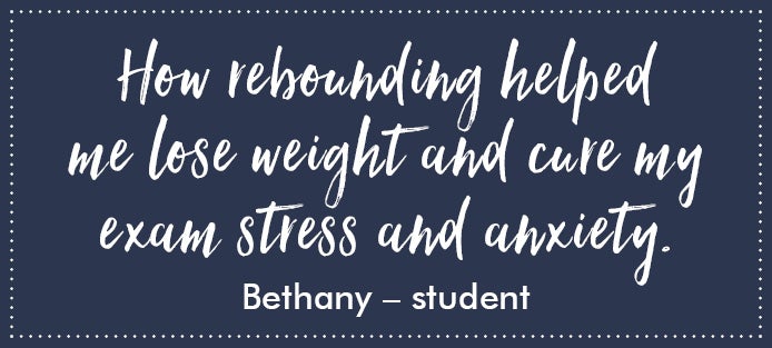 I started rebounding during my mid-year matric exams to help me cope with my extremely high stress levels. It gave me, not only a daily release of endorphins, but also a better night’s sleep and cleared up my skin.